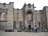 Druhý den je na programu prohlídka města, protože Edinburgh je velice starobylý a na každém kroku potkáte nějakou památku. Nejdříve jdeme na hrad - vlastně ne, nejdříve kupujeme půlkilové balení vynikajících čokoládových sušenek v obchodě "vše za libru" a pak jdeme na hrad. Trochu mě zaskočila cena - 10 liber - a žádná sleva pro ubohé studenty... Na tento hrad má ze své pracovny výhled paní Rowlingová, autorka Harryho Pottera Takovýto výhled zase mají návštěvníci na pracovnu paní Rowlingové Dva krojovaní Skotové nám vyprávěli o skotském oblečení a předvedli i šermířský souboj. Ve Skotsku je nicméně trochu odlišný dialekt, takže jsem jim rozumněla asi každé desáté slovo, což zdaleka nestačilo...:(