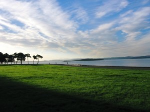 Do centra města se dostáváme v nákladovém prostoru jakéhosi pick-upu a následně double-deckerem. Vypleníme informační kancelář a jdeme se hned ubytovat do kempu. Je u zálivu, přesně na opačné straně, než jsou kopce, ze kterých jsme se ráno dívali na město. Kemp sám o sobě jsme nefotili, už jsme si na ty trávníky a karavany zvykli, ale procházka po břehu moře byla so romantic...se divím, že tam nebylo víc lidu skotského..